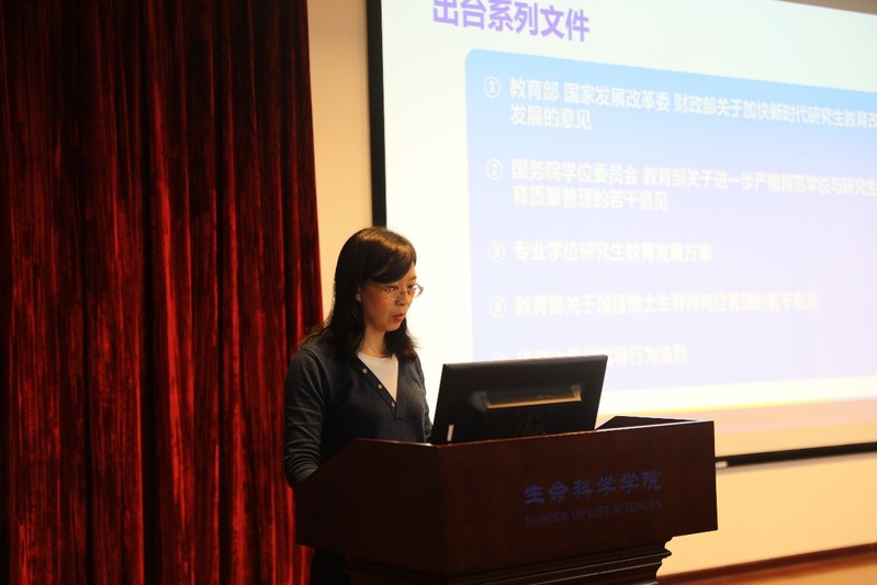 学院党委副书记葛学凤做师德师风专题报告,着重传达全国研究生教育会议和我校前不久刚刚召开的研究生教育工作会议精神内容,并就《关于加快新时代研究生教育改革发展的意见》和《研究生导师指导行为准则》两个文件做重点介绍。强调导师要全面落实立德树人根本任务,坚持严谨治学,支持研究生开展科学研究,加强对研究生的人文关怀,守住行为底线。