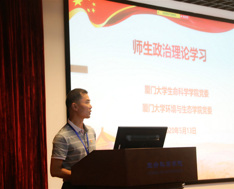 5月13日下午,援鄂国家医疗队厦门二队队长、厦门大学附属中山医院副院长尹震宇教授应全国高校双带头人教师党支部书记工作室--生命科学学院生物医学科学系党支部书记吴乔教授的邀请,为生命科学学院、环境与生态学院师生作题为“COVID-19防控一线”的报告。本次报告会通过“线上+线下”形式开展,主会场设在生命科学学院B栋五楼报告厅,部分师生通过随会系统视频聆听报告。报告会由生命科学学院、环境与生态学院党委书记张明智主持。
