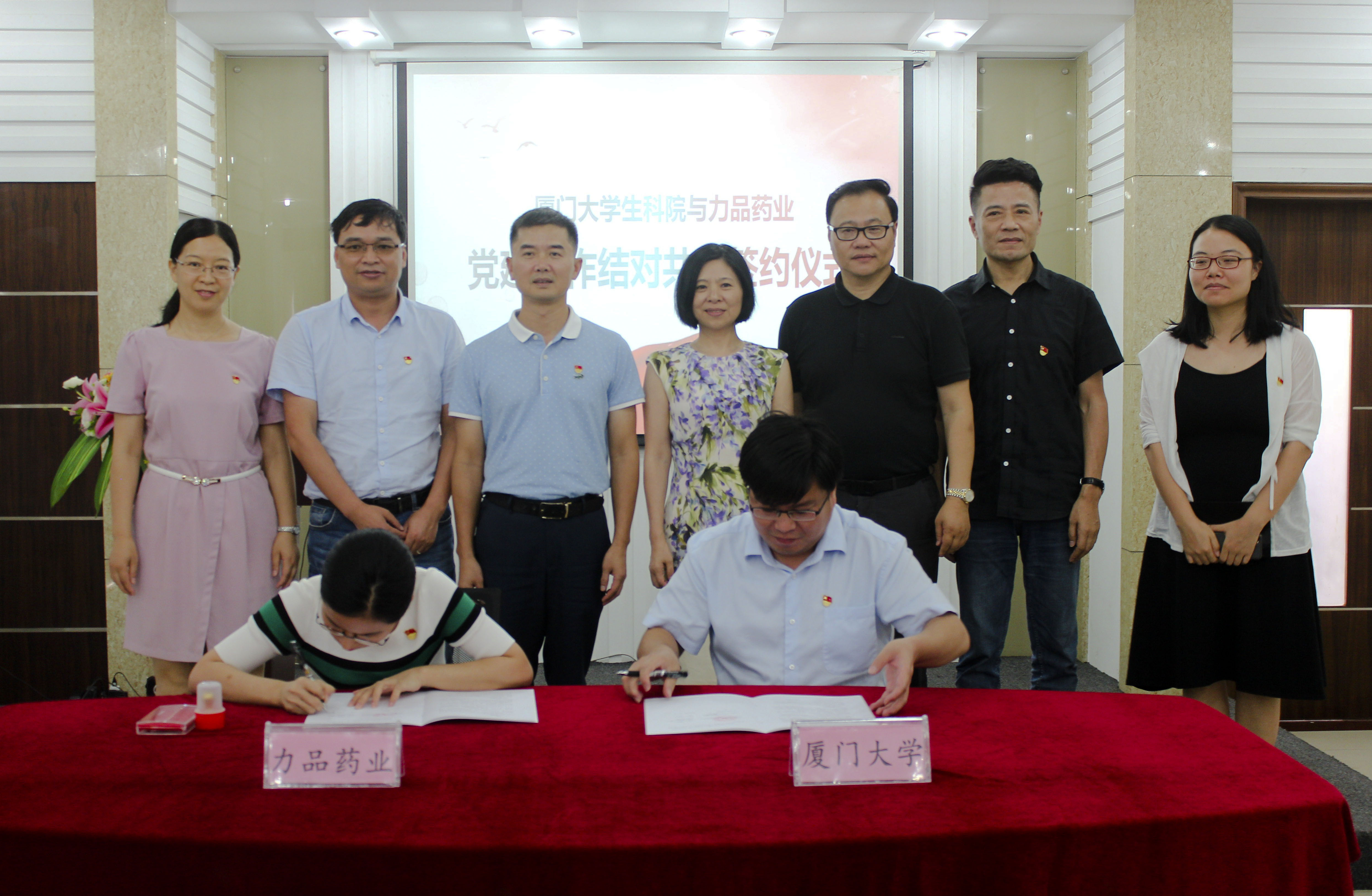 7月25日下午,学院党委与力品药业(厦门)有限公司举行党建合作共建签约仪式。力品药业董事长叶英博士、总经理朱海健博士,力品药业党支部书记葛尚英、副书记谢丽艳:学院党委书记张明智,副书记葛郝锐、葛学凤,副院长左正宏、李博安及双方的党员代表参加了签约仪式。