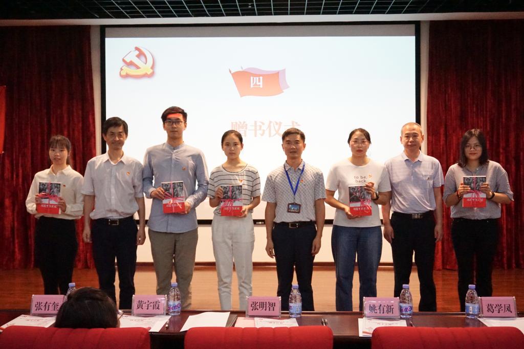 此外,本次培训班为全体学员选购了《习近平在正定》和《平语近人——习近平总书记用典》等读物,姚有新、张有奎、张明智向培训班学员代表赠书,黄宇霞为“扬才计划”学生党支部书记培训班授旗。