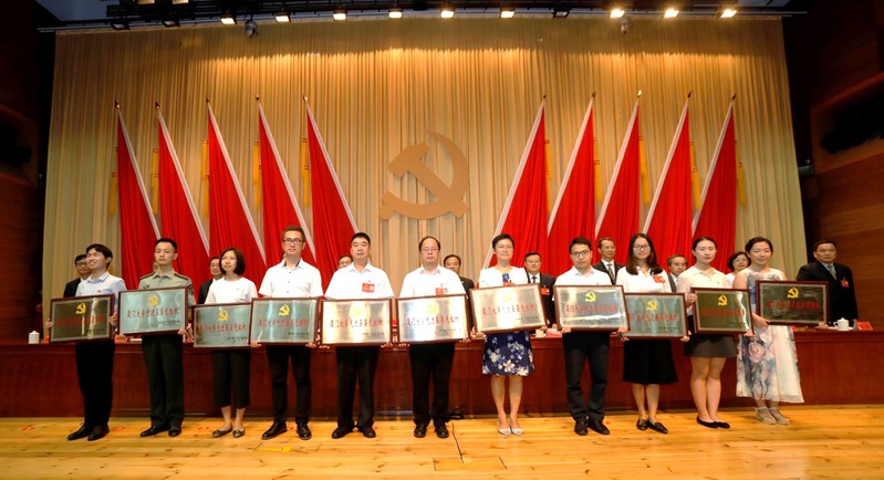 林东伟同志宣读了表彰名单。新闻传播学院党委等30个基层党组织获得“先进基层党组织”称号;谢媛等158名师生党员获得“优秀共产党员”称号;朱晓芳等20名党务工作者获得“优秀党务工作者”称号。