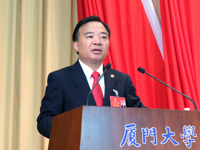 这次大会,是在中国特色社会主义进入新时代,我校改革发展和“双一流”建设开启新征程的关键时期召开的一次十分重要的大会。大会主题是:高举中国特色社会主义伟大旗帜,深入学习贯彻习近平新时代中国特色社会主义思想和党的十九大精神,以立德树人为根本,以改革创新为动力,牢记历史使命,扎根中国大地,加快“双一流”建设,推进内涵式发展,坚定不移为全面实现“百年厦大”建设目标、加快建设中国特色世界一流大学而奋勇前进。