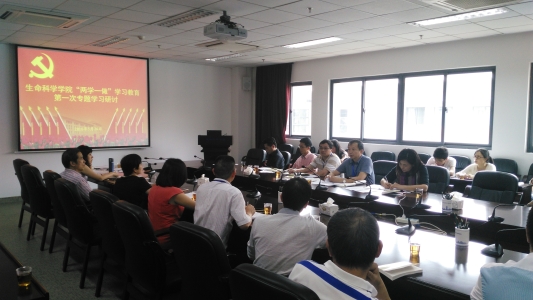 根据学校“两学一做”学习教育工作安排,5月26日下午,生命科学学院党委以中心组学习的形式,在黄朝阳楼B403会议室召开“两学一做”学习教育第一专题学习研讨,学院及实验动物中心党员领导干部、党委委员参加会议,党支部书记代表、辅导员列席会议观摩。会议由学院党委书记陈光主持。