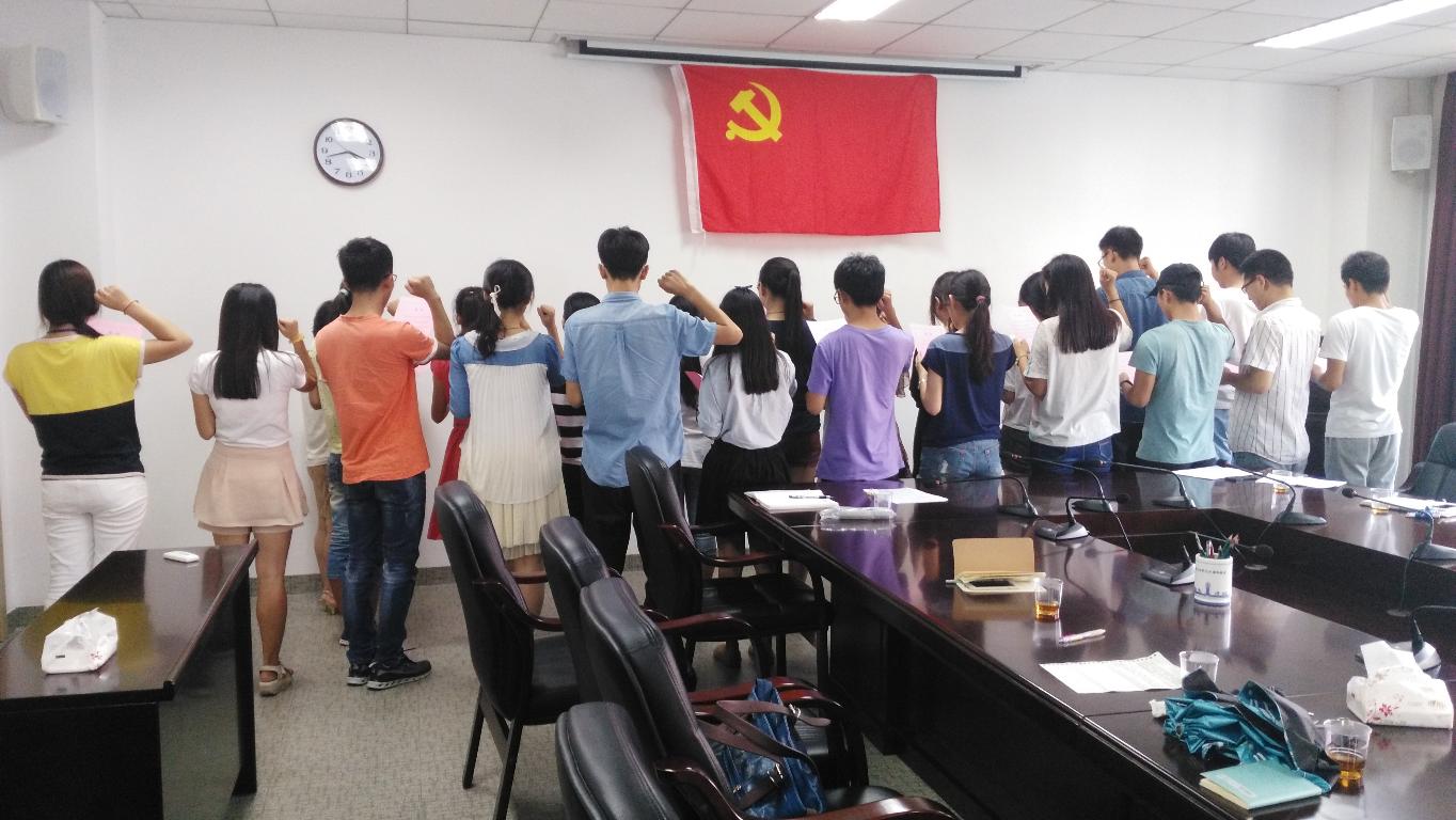 座谈会后,学院党委举行了新党员入党宣誓仪式。学院团委副书记刘静作领誓人,22名新党员在圣神的党旗面前许下了誓言。