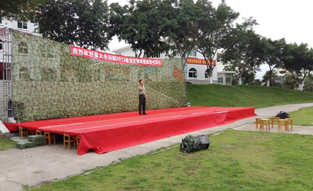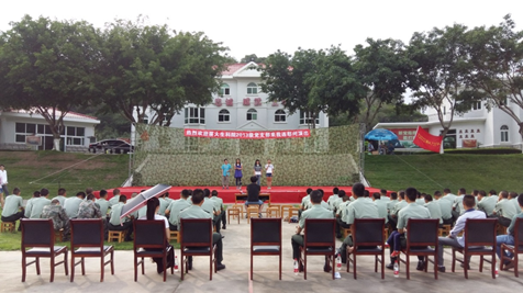 连队特别为同学们搭建了大舞台,演出以一首《倔强》暖场开始,接着三句半、小品、朗诵、舞蹈,陆续登场,一个不少,样样精品,精彩的演出迎来了官兵们的阵阵热烈的掌声和欢呼声。演出期间,还穿插了游戏环节,抢凳子、一块五毛,兵哥哥们与同学们一起互动;热火的舞蹈教学小苹果更是吸引了兵哥哥们的集体参与;最后在连长深情演唱的《凤凰花开的路口》中,本次慰问演出圆满结束。