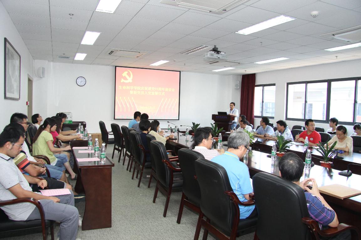 7月1日下午,生命科学学院在黄朝阳楼B403会议室召开庆祝建党93周年座谈会暨新党员入党宣誓仪式,学院党委委员,教工党支部书记,优秀师生党员代表,辅导员、党务秘书,以及新党员参加座谈会和仪式。学院党委副书记左正宏主持座谈会。