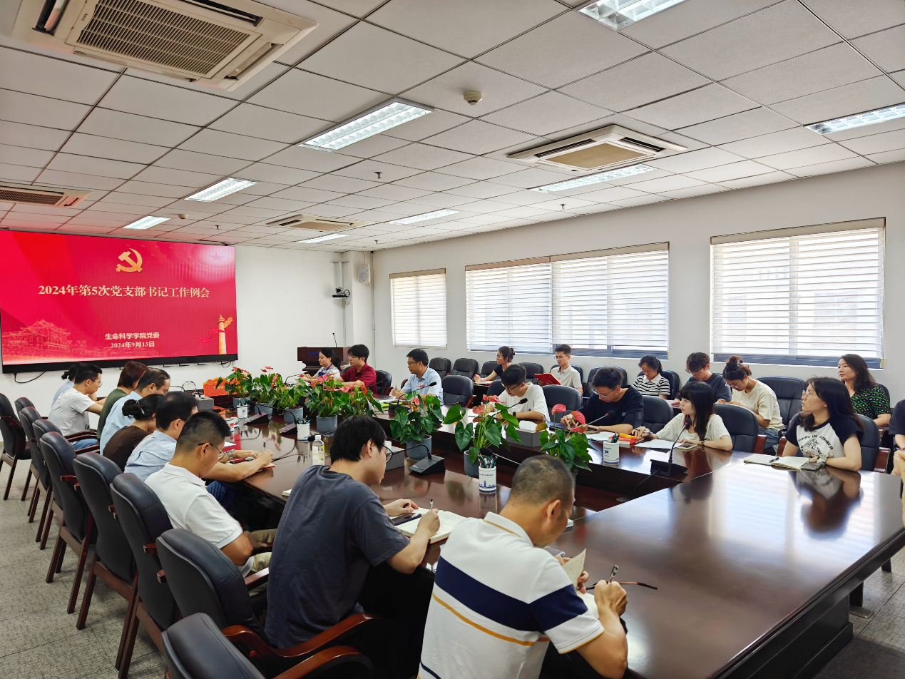 为深入贯彻落实党的二十届三中全会精神,推进近期党建工作重点任务,9月13日,生命科学学院党委在黄朝阳楼B403会议室召开党支部书记工作例会,学院党委书记马进龙,党委副书记乐无恙、徐莹,各师生党支部书记、党务秘书、组织员参加会议。会议由徐莹主持。