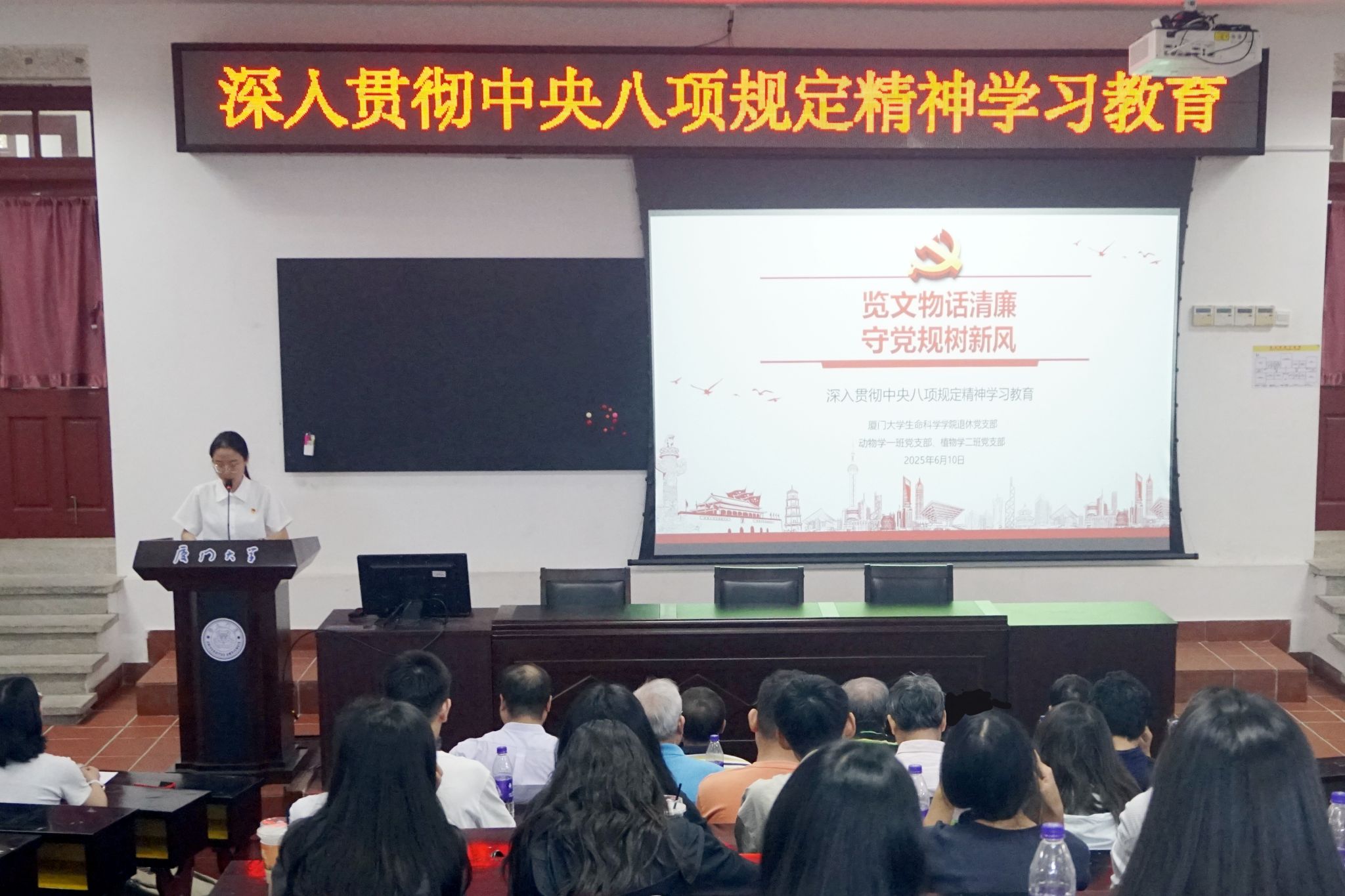 为开展好深入贯彻中央八项规定精神学习教育, 6月10日上午,生命科学学院退休党支部、动物学一班党支部与植物学二班党支部赴厦门市博物馆联合开展“览文物话清廉,守党规树新风”主题党日活动。