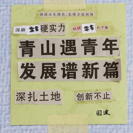 有的同学从科研攻坚的经历中凝练出“在科技创新的浪流中/孜孜不倦/于苦尽甘来时/看那硕果与幼苗破土而出”的诗意表达;有的同学则将宏大命题与科研使命相结合,创作出“从田野之广/禾下梦境/到银河之深/蓝图创新/中华民族伟大复兴的中国梦/正在劈波斩浪/攻坚克难中实现”的语句。“这次的拼贴诗让我把心中对粮食安全的愿景具象化了。”一位学生党员分享道,“它不只是一次创作,更是一次信念的凝聚。看到大家的诗句,我真切感受到那份属于中国人的家国情怀与独特浪漫。”