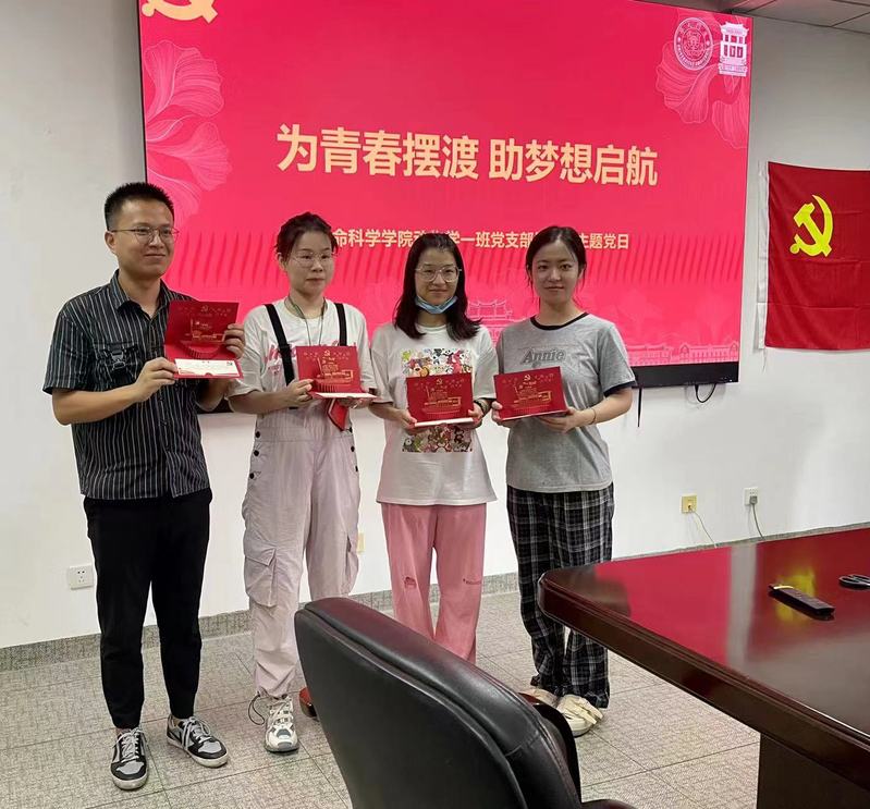 毕业在即,为教育引导2022届毕业生正确认识时代责任和历史使命,做到爱国爱党、感恩荣校,以昂扬向上的精神风貌和自强不息的担当作为校园、迈入社会。2022年6月17日,生命科学学院动物学一班党支部响应学院“青春献礼二十大,强国有我新征程”主题教育活动号召,特开展“为梦想摆渡,助青春启航”主题党日活动。学院党委副书记张宇斌出席本次党日活动。