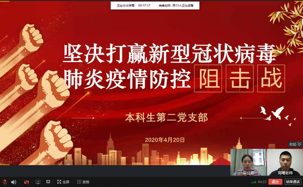 目前,疫情蔓延势头被初步遏制,我国正处于外防输入、内防扩散的关键时期。为团结一心打赢疫情防控阻击战,2020年4月20日,厦门大学生命科学学院本科生第二党支部在线上开展 “坚决打赢新冠肺炎疫情防控阻击战”微党课。本次微党课由党支部书记吴佳蓓主持,邀请中共厦门市委党校经济学教研部讲师高曦担任嘉宾,支部全体党员参加,并且吸引了23名入党积极分子在线观看。