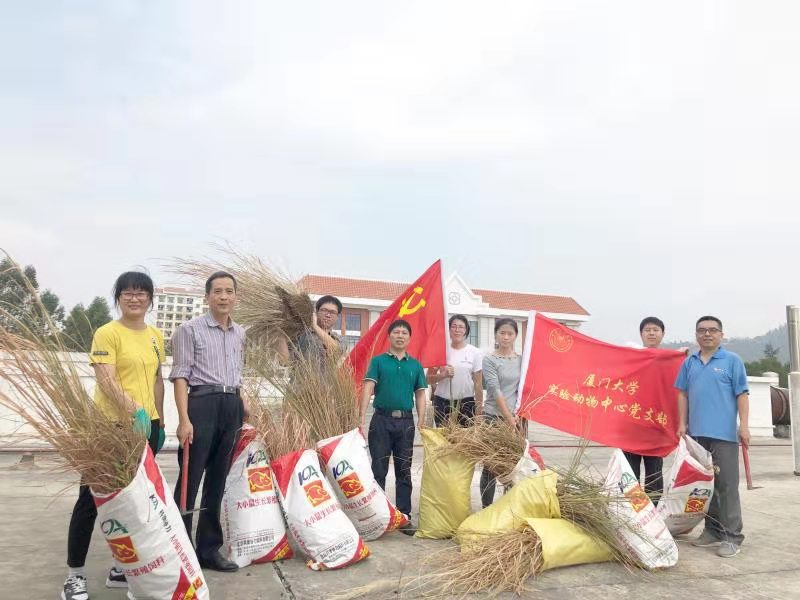 响应党的号召,实验动物中心党支部今年以来已多次开展“不忘初心、牢记使命”主题教育。为践行立足岗位做一件小事的理念,10月28日,支部全体党员志愿进行了除草活动,对中心顶楼地面空隙滋生的杂草进行了清理。活动中,各位党员同志充分发挥了不怕脏、不怕累的精神,精诚合作,齐心协力,经过近半日的清理,顶楼的大面积杂草被清除并装入编织袋妥善处理,环境变得整洁、有序。