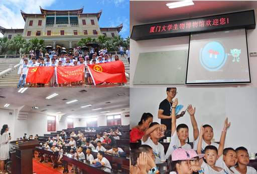 微生物一班党支部的研究生们带领着活泼可爱的孩子们参观了厦门大学校本部,校史馆、建南大会堂、科学艺术中心、芙蓉湖畔、芙蓉隧道,一路上都留下孩子们的欢声笑语和不断的惊叹声,让这些来自维吾尔族、哈萨克族、回族中小学生们充分感受了厦门大学的美丽风光和浓厚的校园文化氛围,之后大家来到了本次共建的主要活动地——厦门大学生物博物馆。党支部的“大朋友们”首先安排“小朋友们”观看了两段精心准备好的卡通科普视频,生动有趣的向孩子们科普了真菌的组成、分类、生殖以及癌细胞的发生、发展及危害知识;在随后的有奖问答环节,孩子们争先恐后的举手提问,党支部成员一一耐心解答,使孩子们沉浸在生物科学的奥妙之中;最后,“大朋友”们以讲解员的身份,带着“小朋友们”参观生物博物馆内的各种标本、生命体。整场活动,孩子们被深深的吸引了,澄亮的眼眸里充满了对知识的好奇与向往。