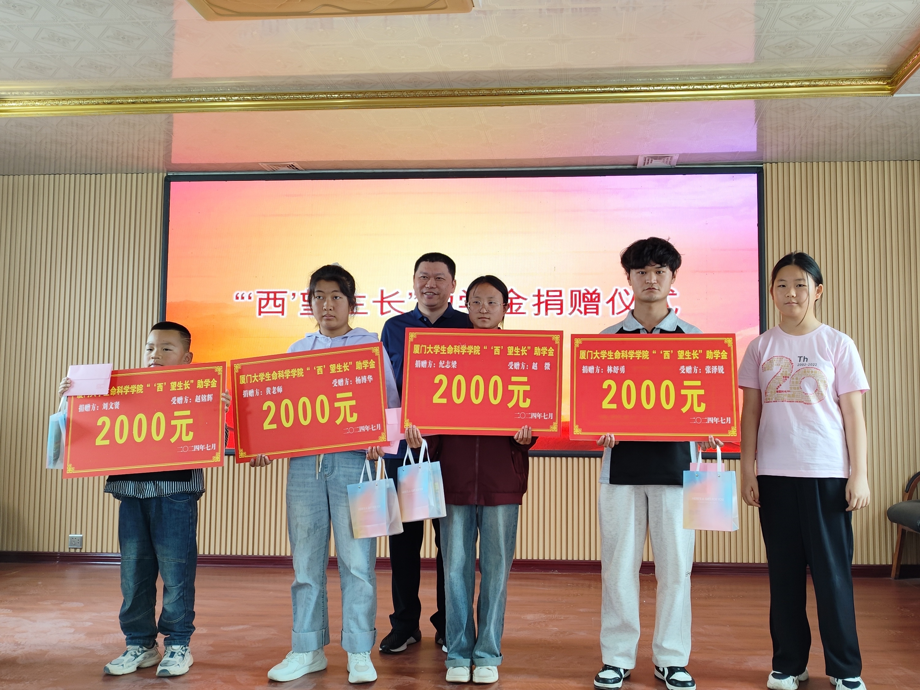 “‘西’望生长”是生命科学学院办公室党支部为宁夏隆德县专门发起的公益助学活动,通过党组织的力量发动支部党员和学院教工为张树村的教育提供实质性的帮助,并引导院友等社会力量提供支持,第一批共资助10名张树村家庭较为困难的中小学生。在此次“‘西’望生长”助学金捐赠仪式上,捐助人之一、98级院友程健作为代表,向受资助的学生代表发放了助学金。戴立欣代表张树村向爱心人士支持隆德教育事业的善举表示感谢。他强调,张树村党支部会跟进做好受资助对象审核、助学金发放和使用工作,确保每一笔助学金都对困难学生带去切实帮助。现场气氛和睦,受资助学生和家长也向捐助人表达了真挚的感谢。