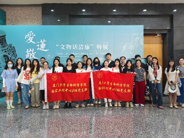 “加强纪律性,革命无不胜”,习近平总书记多次就开展党纪学习教育发表重要讲话、作出重要指示,为开展党纪学习教育提供了重要遵循。为进一步推动党纪学习教育深入人心,增强青年党员的纪律意识和廉洁意识,8月3日,生命科学学院国家工程中心一班和国家工程中心二班党支部联合举办以“莲洁清心,廉洁铸魂”为主题的实践活动,组织支部成员前往厦门市博物馆参观“文物话清廉”特展。