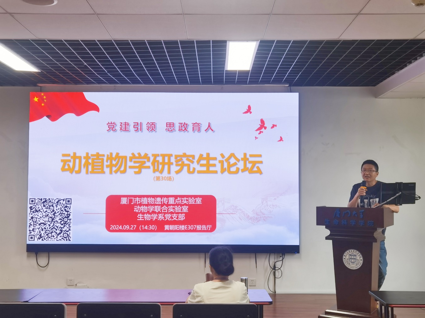 9月27日下午,生物学系党支部在黄朝阳楼E307报告厅举办“党建引领 思政育人”第30期动植物学研究生论坛主题党日活动,党支部成员李光教授,及其课题组2022级博士生李欢为大家协同作“党建+科研”微报告,师生二人分别围绕“党建引领科研,科研创新发展”主题接力展开分享。活动由生物学系党支部副书记梁君荣教授主持。