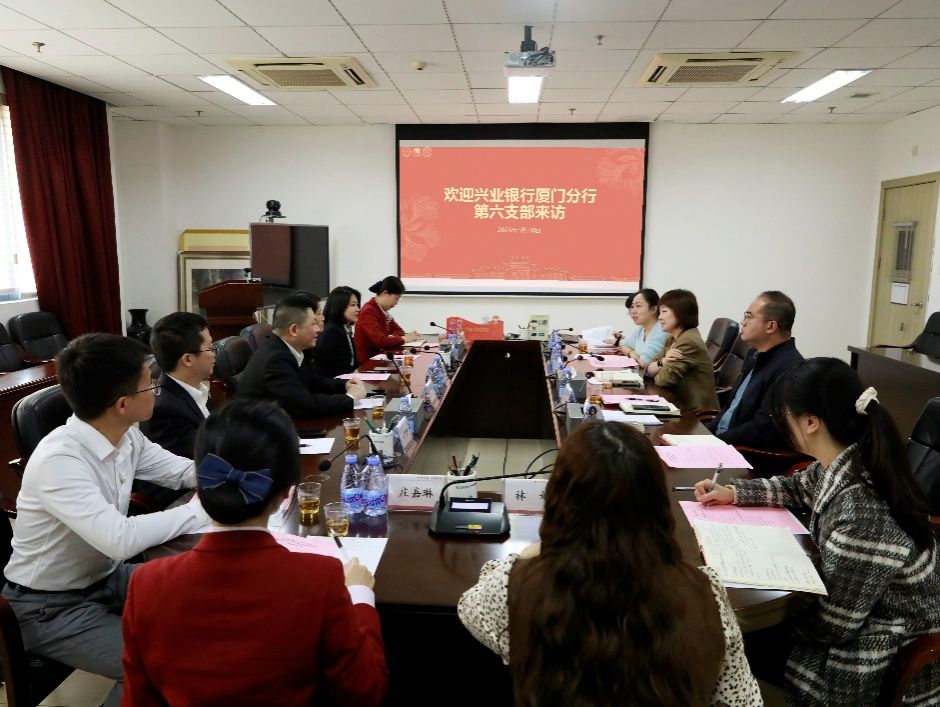 3月20日下午,兴业银行厦门分行第六支部书记、行长蔡旭带领支部党员到访学院,与办公室党支部展开交流。学院党委副书记乐无恙、徐莹,党支部书记吴佳蓓、副书记何燕青、宣传委员吴筠梅、党务秘书肖宁双、人事秘书林妍参加座谈会。