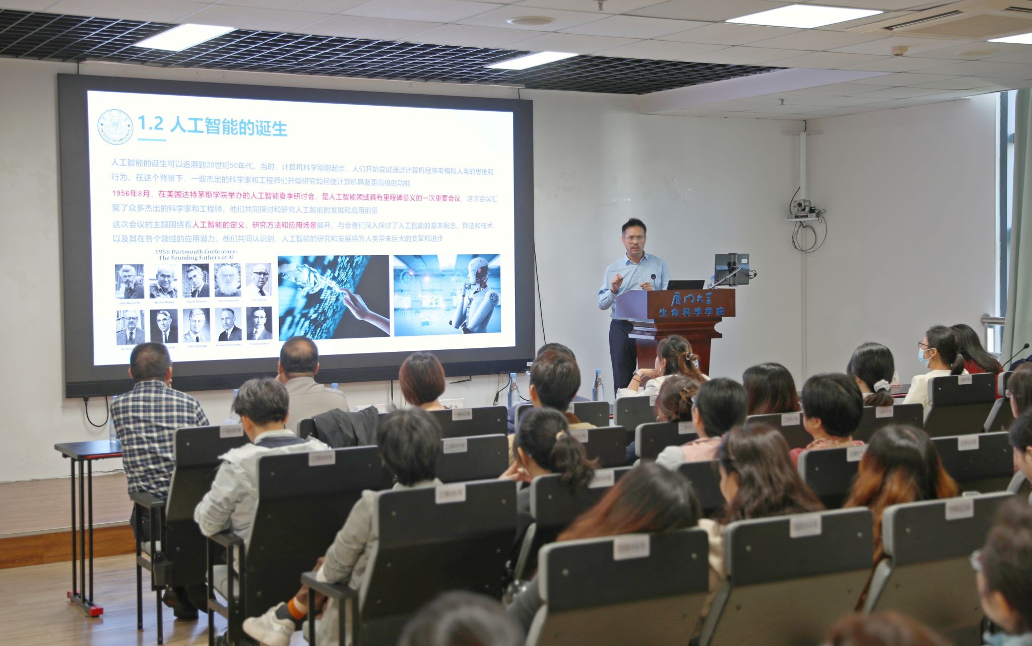 12月1日上午,学院在黄朝阳楼E307报告厅开展“行政能力素质提升之邀学上门”活动。本次活动特邀我校信息学院计算机系副教授、数据库实验室负责人林子雨作题为“大模型助力高校行政工作效能提升”的专题报告。学院党委书记马进龙,副书记乐无恙、徐莹,院长助理、党委委员谢忠,以及学院“一办三中心”党政管理人员、专业技术人员、辅导员、兼职辅导员、科研助理、学生助理等近百人参加学习。活动由办公室党支部书记吴佳蓓主持。