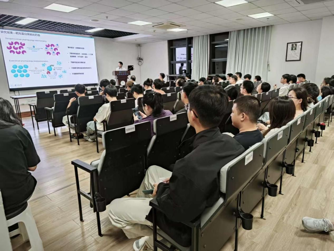 本次论坛由生物医学科学系党支部书记陈航姿教授主持,邀请邓贤明教授团队的博士生阳明洋作为汇报人。他围绕在国际顶级期刊Nature Biotechnology发表的研究成果,介绍了两大科研团队通过合作达成的研究成果,并系统分享了靶向“不可成药”靶点的创新技术路径。