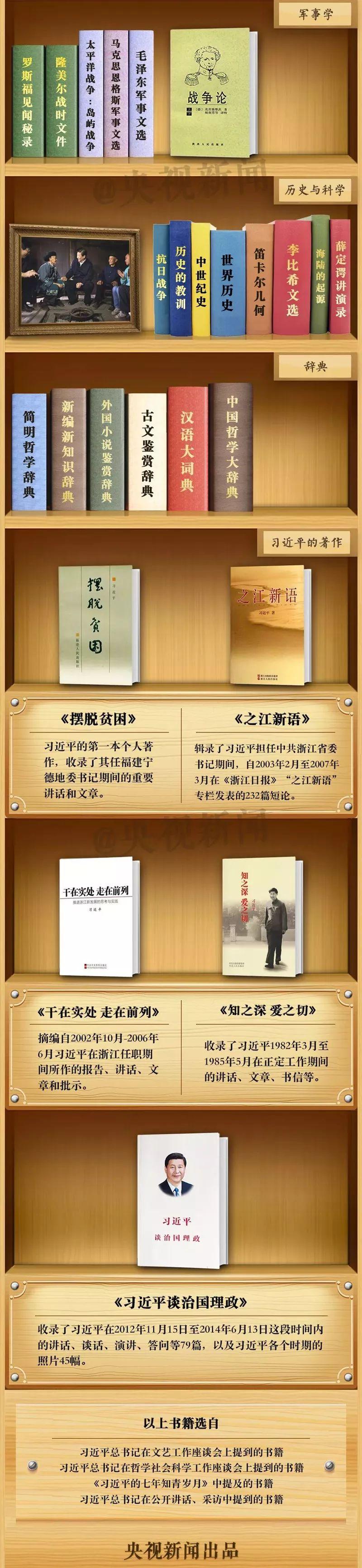 今天,我们定制了习近平总书记的“书柜”,来看看总书记的“书单”和读书感悟吧。