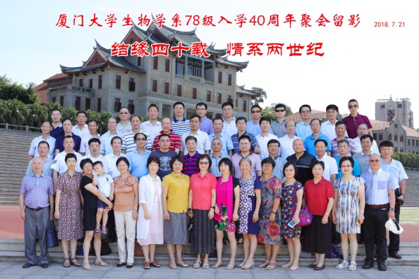 2018年7月21日,生物系78级校友入学四十周年返校座谈会在生物博物馆114教室举行,为生物系78级校友举行入学四十周年返校活动拉开序幕。来自海内外的50余名校友与10余名当年授课的老师们齐聚一堂,回忆求学往事、共叙师生情谊。学院院长周大旺教授、副院长左正宏教授应邀一同出席活动。
