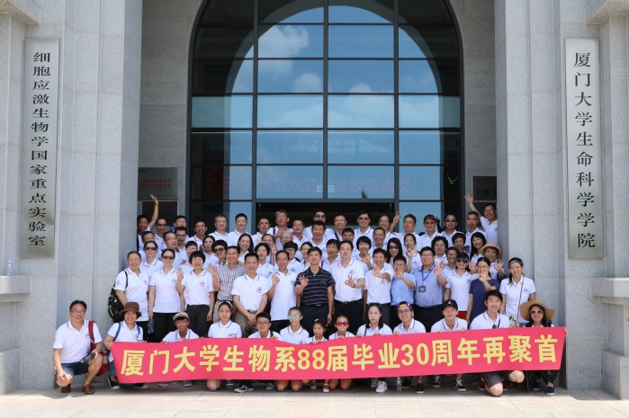 随后,校友们在康莱德酒店举行“相聚30年——重温校园梦、青春再回眸”的交流联欢会。学院党委书记张明智、副院长欧阳高亮教授、副院长左正宏教授、党委副书记葛郝锐和党委副书记葛学凤参加了活动。张明智书记代表学院致辞,欢迎84级校友重返母校,母校和学院以他们为荣。他表示,学院96年的发展离不开广大校友的支持,希望校友们一如既往地关心支持学院的建设和发展,与学院师生员工携手一道,共建一流生科,实现厦大生科人世界一流的生科梦。欧阳高亮教授为校友们介绍了学院近年的发展情况,包括在学科建设、人才培养和科学研究等方面所取得的显著成绩。