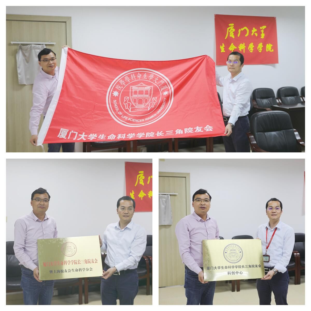 生命科学学院党委书记左正宏、副院长(主持工作)邓贤明共同授予生命科学学院长三角院友会会旗及会牌,同时为长三角院友会科创中心授牌。