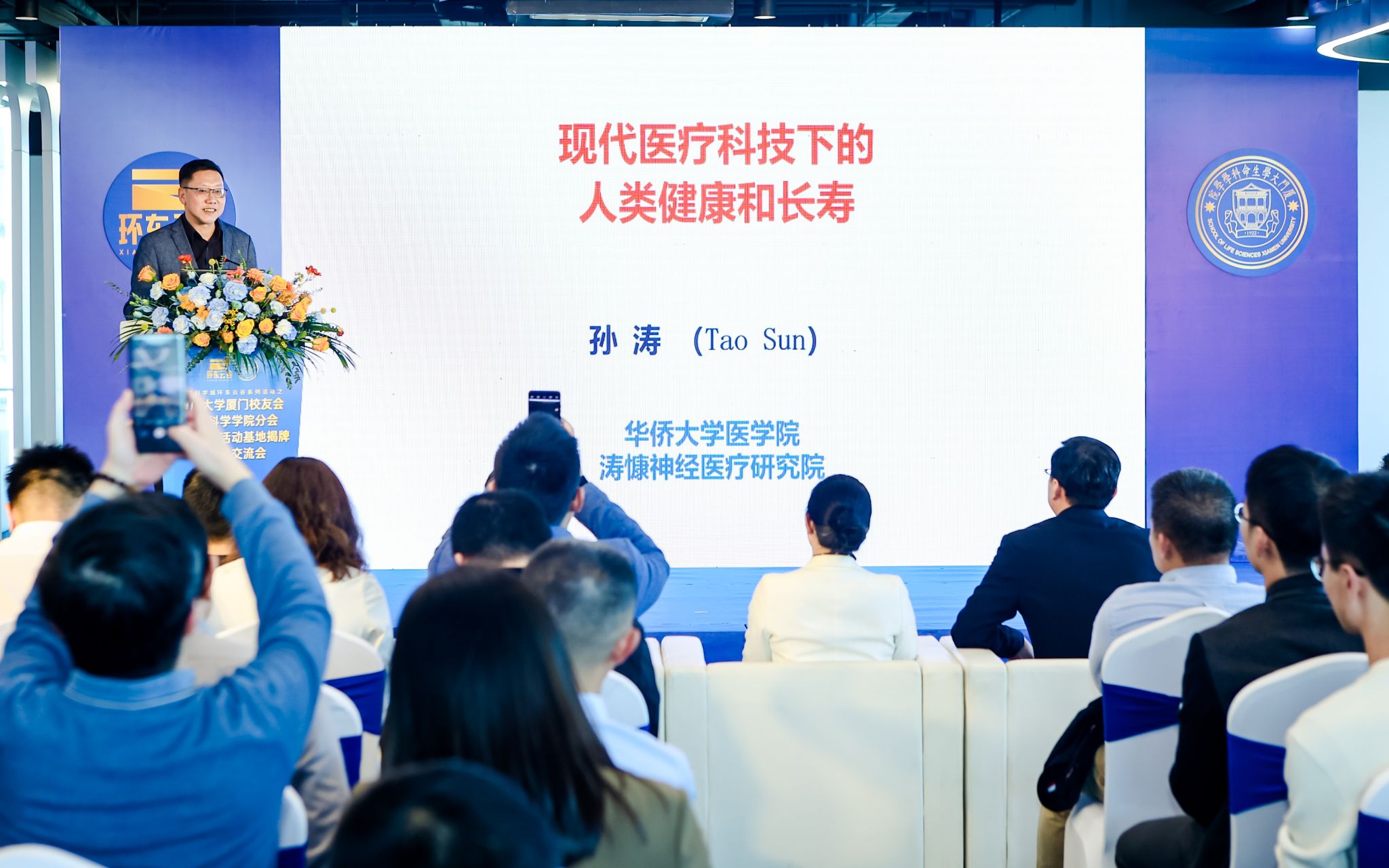 揭牌仪式后,在场嘉宾校友们共同聆听了关于《现代医疗科技下的人类健康和长寿》的主题演讲,以及厦门大学生物医药转化研究院合作机会的分享,在人类生命健康、未来医学方向、生物医药转化等方面开展深入沟通与交流。