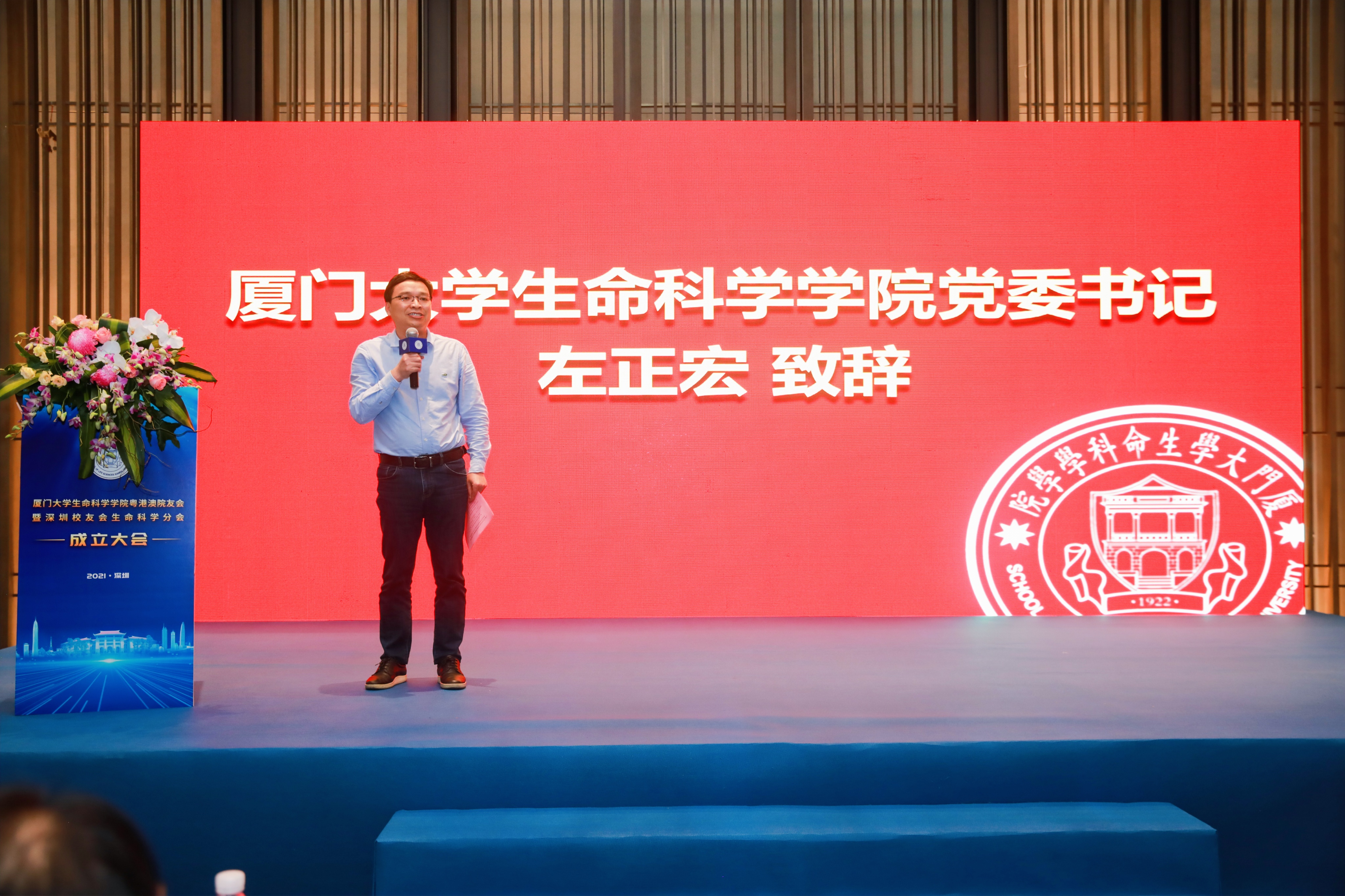 学院党委书记左正宏致辞,首先向为筹备粤港澳院友会暨深圳校友会生命科学分会付出努力的院友和各界朋友表示了衷心的感谢,他表示学院粤港澳院友会的成立,代表我院校友工作再次掀开新的篇章,学院欣慰地看到粤港澳地区不断涌现出一批又一批杰出院友,活跃在学术界、政界、商界等各个社会领域,取得了一系列不俗的成绩,为母校母院赢得了荣誉。希望院友们能回母校母院访师探友,共襄百年盛举,多为学院的发展献计献策,在母校母院新百年的征程中一如既往地支持、关爱学院。
