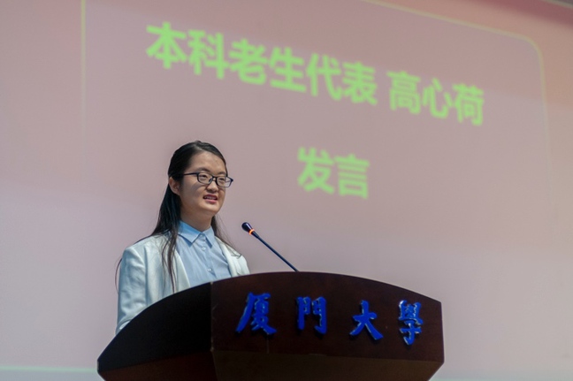 The ceremony started with all standing up and singing the national anthem. Prof. Zhou first warmly welcomed grade 2019 new students. He pointed out that students nowadays can be called lucky generation in terms of their growing environment, conditions of study, opportunities of the times and so on. They are the pillars of the country’s future and the fresh forces for the great rejuvenation of the Chinese nation. He hoped that the students can practice the motto of Xiamen University: Pursue Excellence; Strive for Perfection and develop the habit of active and continuous learning. He also hoped the students will accumulate profound knowledge through learning, improve their comprehensive literacy, exercise their ability, and foster a glittering personality, and ultimately produce scientific research results that can benefit the country and all mankind.