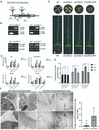 Abstract: Extracellular vesicles (EVs) are increasingly being recognized as important mediators of intercellular communication in plants, but their biogenesis, heterogeneity, and membrane origins remain poorly understood. Here, the structural diversity, formation mechanisms and potential functions of EVs from various plant cell types under normal physiological conditions are demonstrated using 3D electron tomography (ET), cryo-ET, and immunogold transmission electron microscopy (TEM). The EVs are classified into three distinct categories based on their size, content, and molecular marker profiles. These are TET8-positive small EVs (∼50-200 nm in diameter, lacking organelle content), Exo70E2-positive medium EVs (∼200-500 nm in diameter, containing ribosomes), and PEN1-positive large EVs/Extracellular tubules (∼500-2000 nm in diameter, containing ribosomes and small vesicles). The Exo70E2-positive medium EVs originate from the plant-specific exocyst-positive organelle (EXPO), and isolated EXPOs carry cargoes associated with stress responses. Subsequent transcriptomic profiling and pathogen-resistance assays in exo70e2 mutants indicate that EXPO-derived EVs contribute to plant defense, potentially by delivering defense-related proteins during pathogen infection. Collectively, these findings provide a framework for understanding EV heterogeneity in plants and highlight EXPO-derived EVs as a potential key component of plant defense.